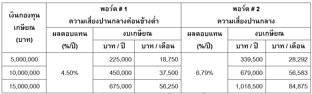 ได้หน้าตาพอร์ตโฟลิโอแล้ว เรามาดูงบเกษียณที่คาดหวังได้กันในตารางถัดไปครับ